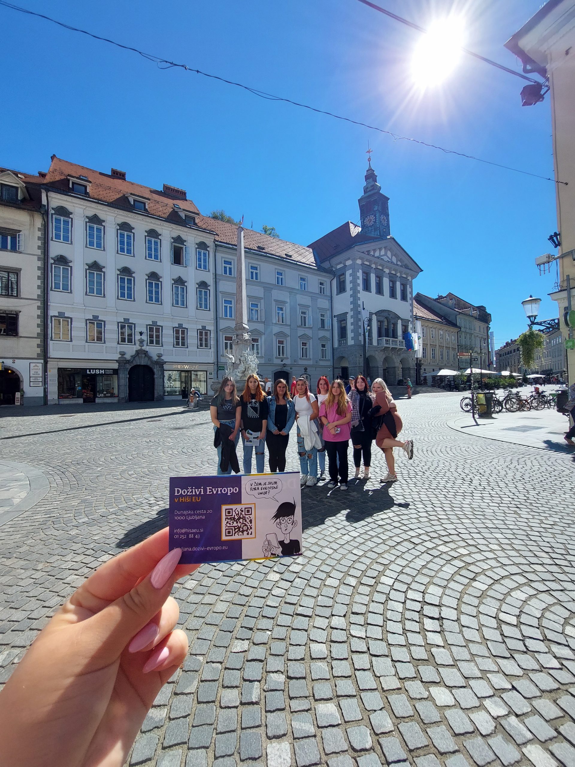 Dijaki so obiskali Hišo Evropske unije, kjer so jim predstavili Evropsko unijo in dejstvo, da nismo »le« Slovenci, ampak tudi Evropejci. Ker je istočasno potekal teden mobilnosti, so se dijaki po obisku Hiše EU odpravili na fotoorientacijo po Ljubljani in fotografirali najbolj zanimive in pomembne točke naše prestolnice..