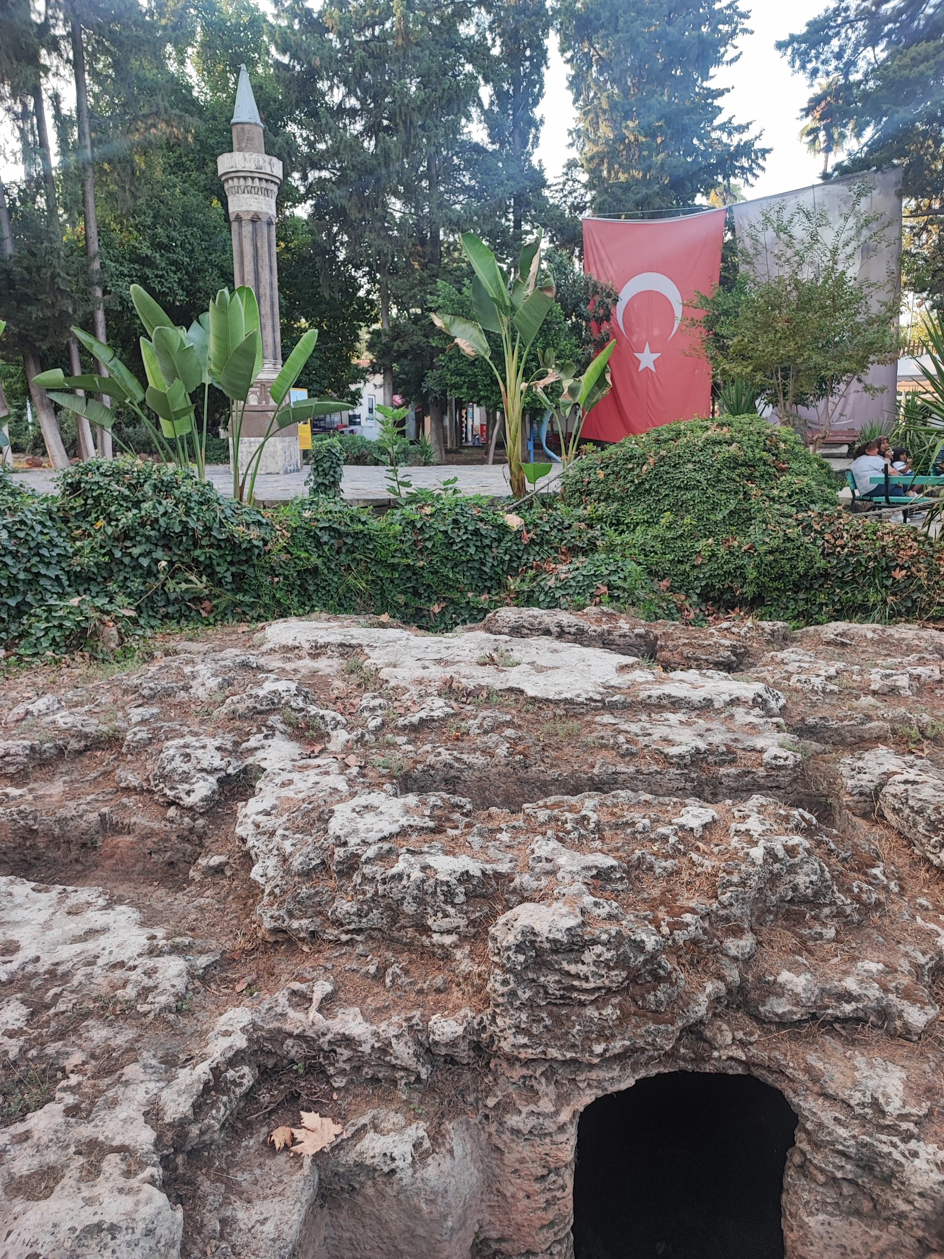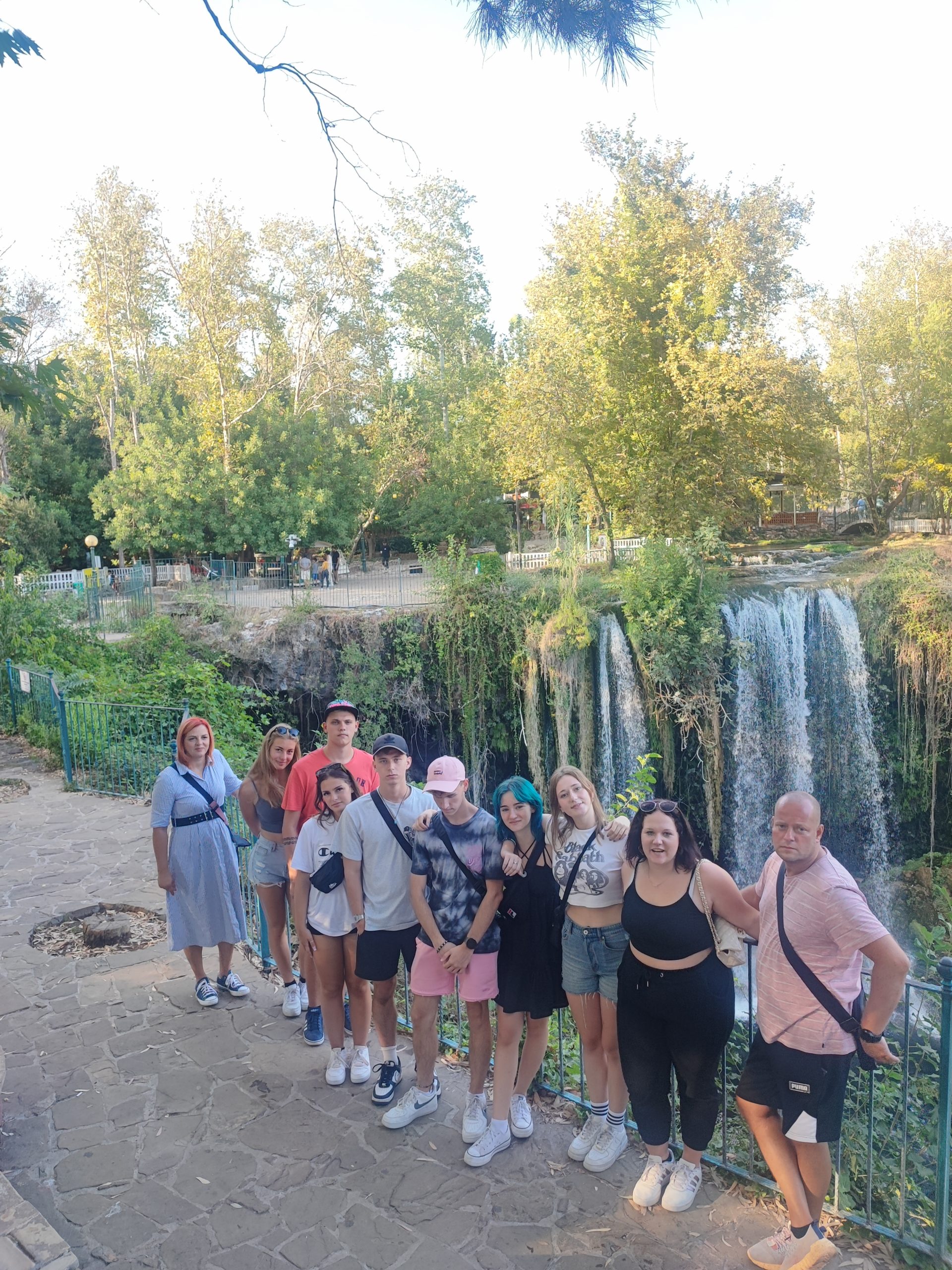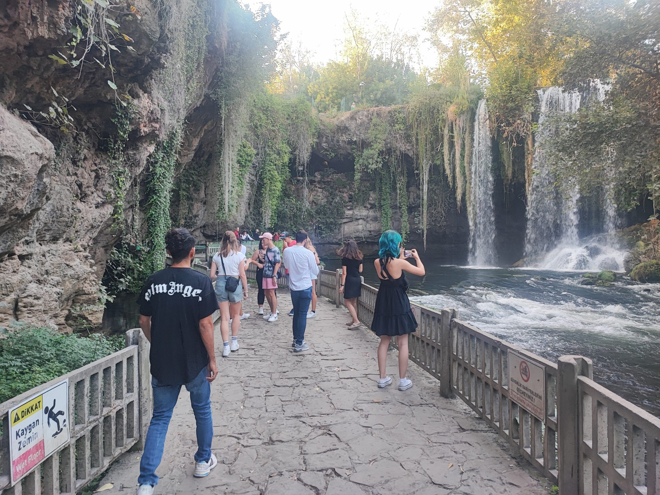 Pol ure po prihodu v hotel smo se odpravili na našo naslednjo točko, na slapove Düden, ki se nahajajo približno 10 km od centra mesta Antalya. Slapovi Düden so čudež narave, ki očarajo obiskovalce. Sprehodili smo se po poteh ob reki in slapovih, nadaljevali pa skozi jamo, ki se skriva za slapom. Po ogledu smo se zaustavili v trgovini s spominki in nakitom. V parku je spet bilo nekaj potepuških psov ter papigi ari, s katerimi sta se Ajda in Neja slikali. Pred vhodom pa so ponujali fotografiranje in jahanje kamel. Še sladoled in slushi ter pot v hotel.