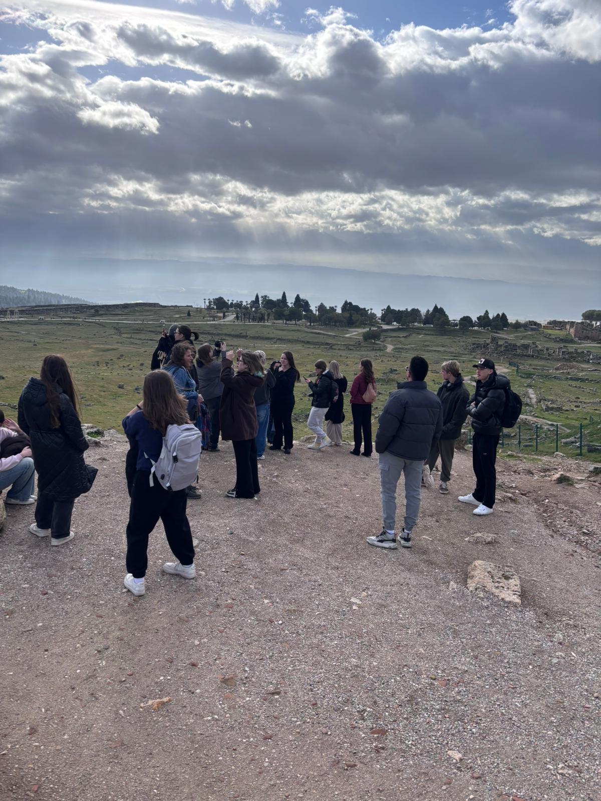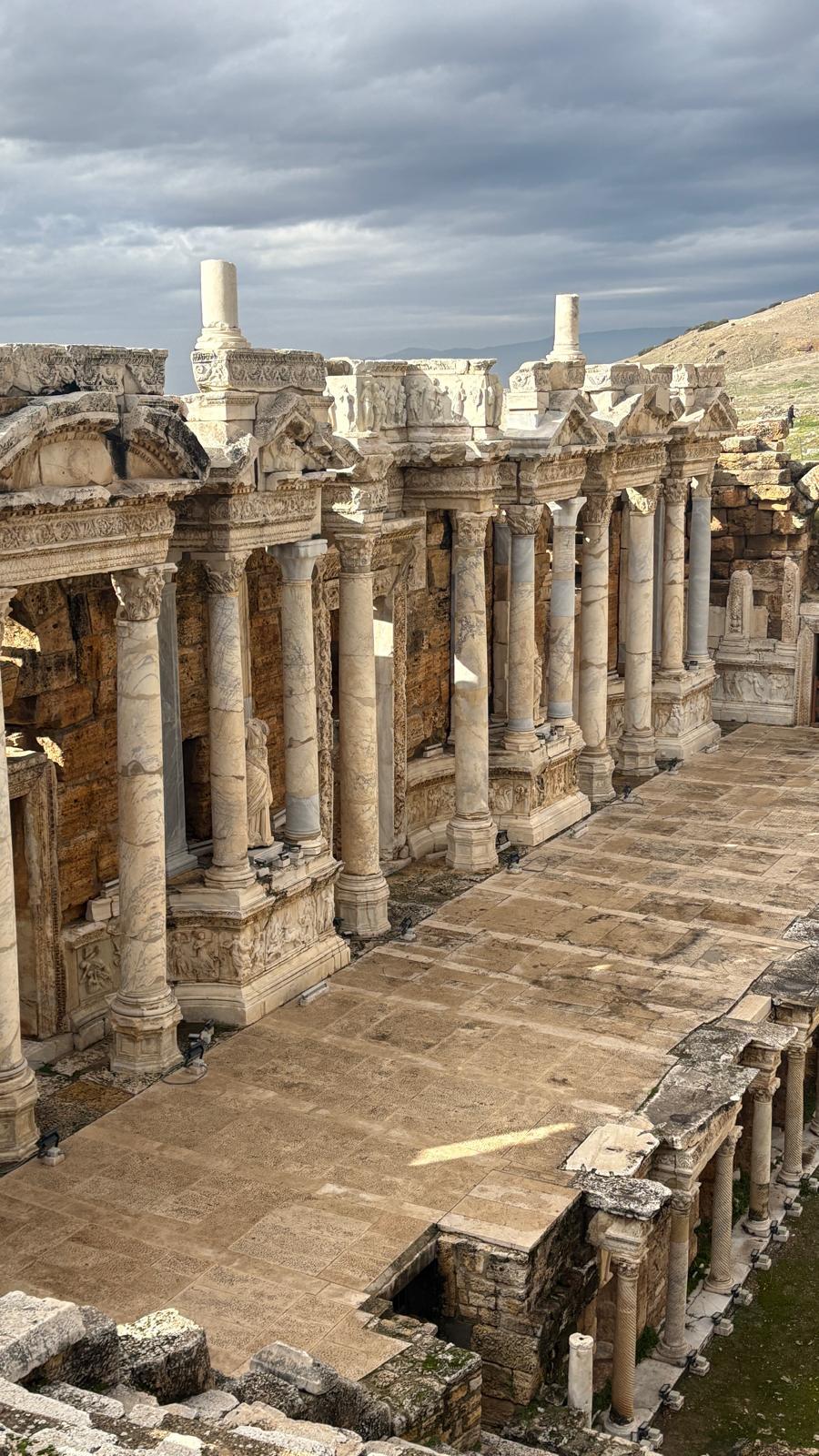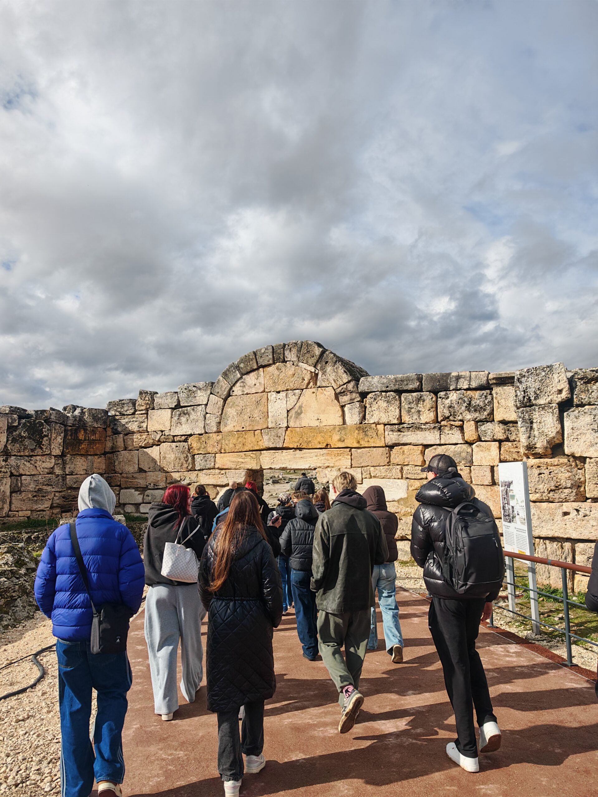 Najprej smo si pogledali Hierapolis (Sveto mesto), ki je antično rimsko mesto. Za začetek smo si ogledalai antično rimsko gledališče, nato pa smo se po tlakovani poti odpravili do Apolonovega templja in do ‘vrat v pekel’. Tako mu pravijo, ker so vse živali, ki so šle skozi ta vrata, umirale na tem prostoru. Od daleč smo si ogledali tudi Kleopatrin bazen, vendar je bil na žalost zaprt in si ga nismo mogli ogledati še od blizu. Nato smo imeli prosto pri apnenastih bazenih in večina dijakov si je šla namočit noge v bazene. Voda v najglobljem bazenu sega odrasli osebi do kolen. Bilo je zelo toplo in sploh ni pihalo, tako da smo se imeli lepo.